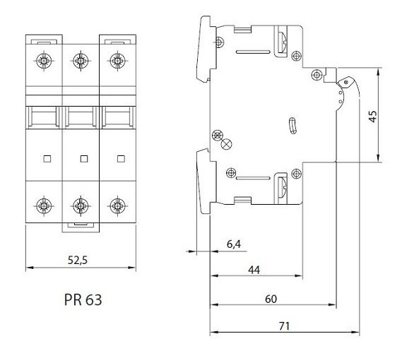 ➡️ Merkmale des Überstromschutzschalters C63A 10kA 3P: