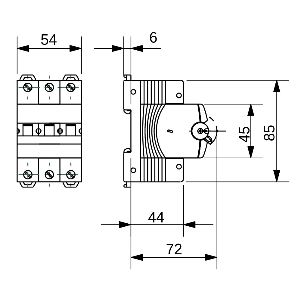 - max. Betriebsspannung: 440V AC / 220V DC