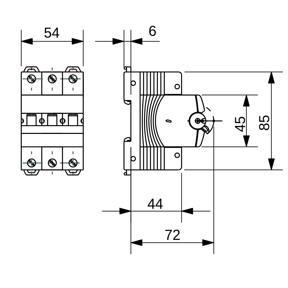 - Leitungsschutzschalter (MCB) nach EN60898-1, mit zeitverzögertem thermischem Überlastauslöser und elektromagnetischem Kurzschlussauslöser.