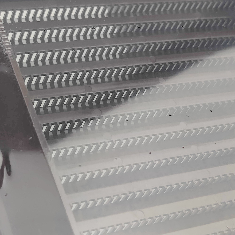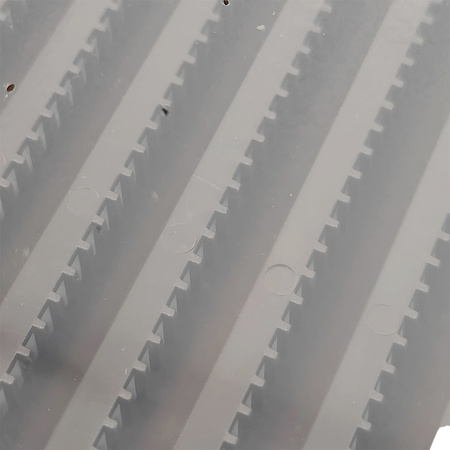 Die Form der Lamellen lenkt die Luft "nach unten", sodass in den Räumen, in denen unser Lüftungsgitter installiert ist, kein Kühleffekt entsteht.