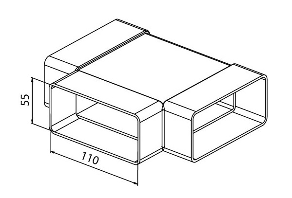 T-Stück für Lüftungssysteme aus ABS Kunststoff bester Qualität mit antistatischem Zusatz zur Verhinderung von Staubablagerungen und UV-Stabilisatoren zur Gewährleistung einer stabilen Farbe. Das T-Stück wird zur Verbindung von Flachkanälen 110x55 auf drei Seiten verwendet.
