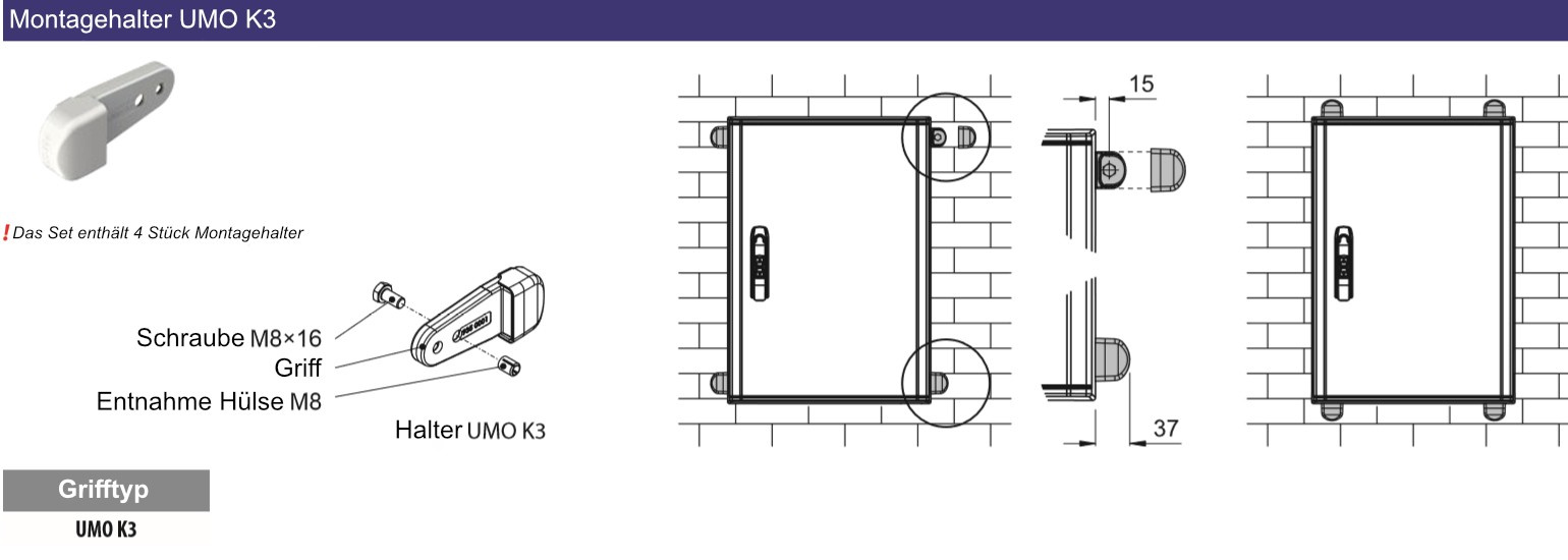 Montagehalter Montagegriff UMO K3 für HYDRA 46x 68x 81x Gehäusen