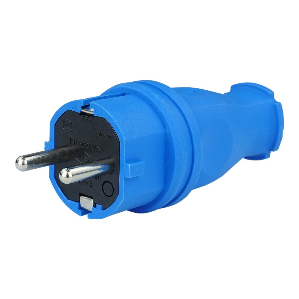 Schukostecker Schutzkontakt 16A 230V Gummistecker Schuko Stecker blau gummi 2P+E