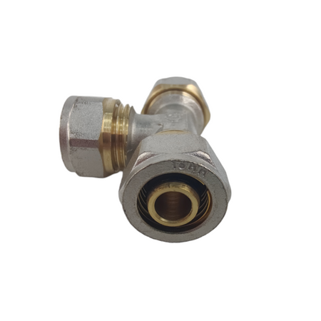 - T-Stück aus Messing für PEX-System. Hergestellt aus Materialien höchster Qualität. Zur Verwendung in Wasserversorgungs- und Zentralheizungssystemen. Gewinde G.