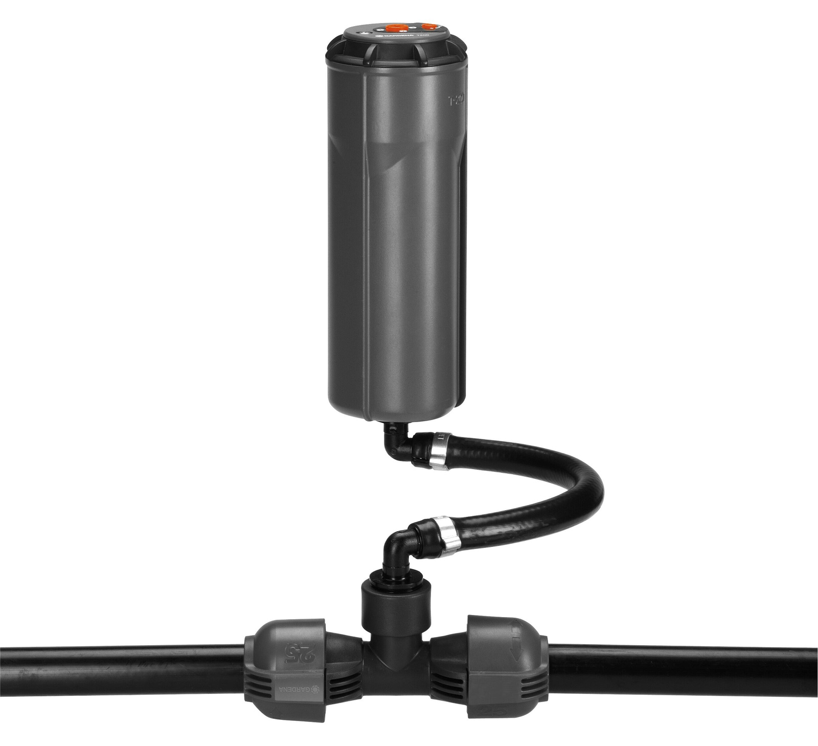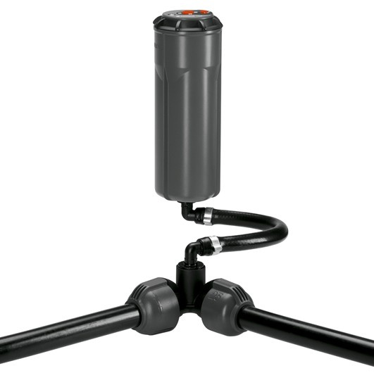 Der Gardena Anschlussdose garantiert eine stabile, flexible und optisch attraktive Möglichkeit, Leitungswasser oder andere Bodenquellen in die unterirdische Bewässerungsleitung zu leiten.