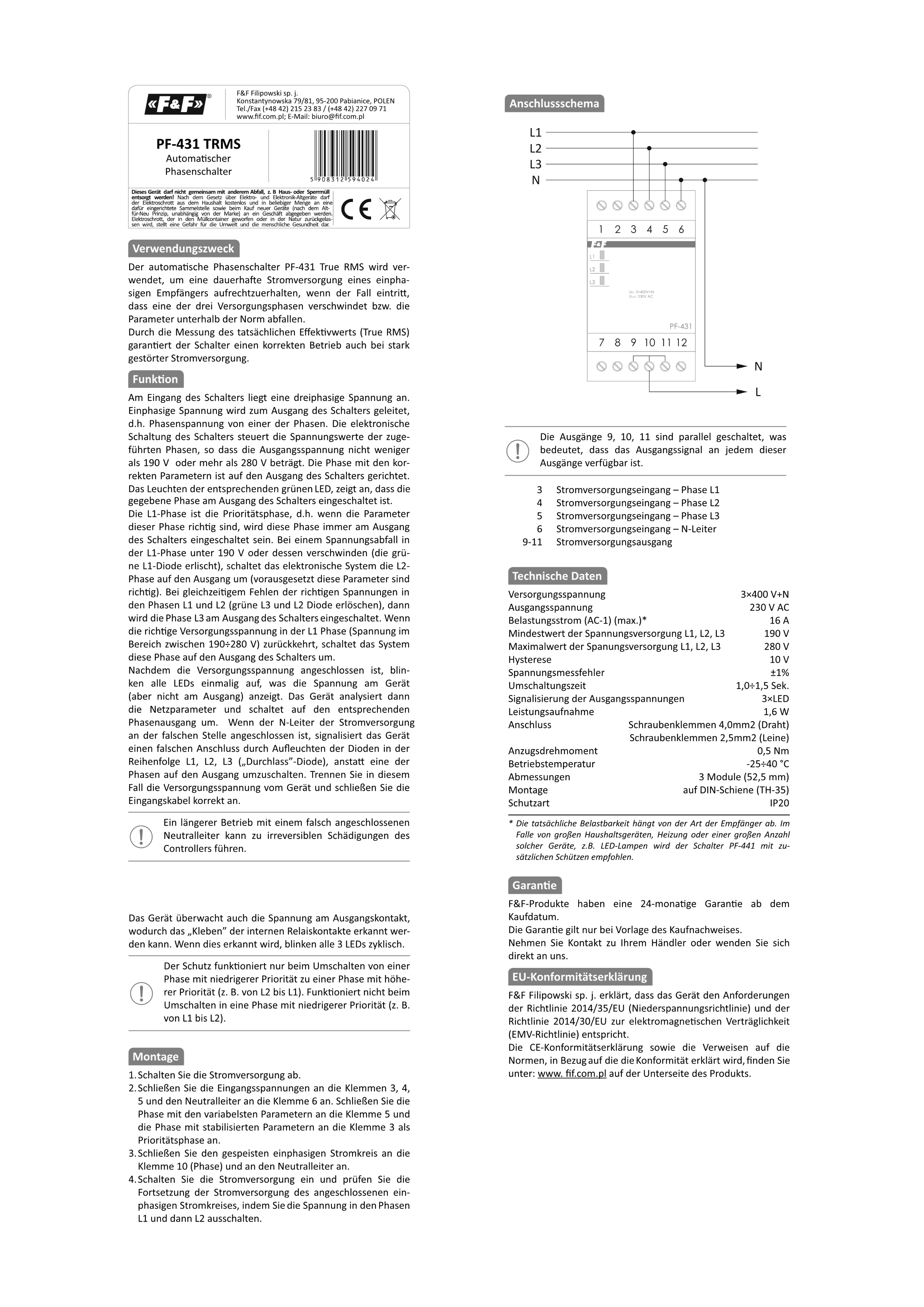 - preis-zone Automatische Phasenumschalter mit Prioritätsphase PF-431 F&F EAN 5908312594024