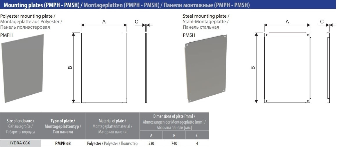 Montageplatte Polyester 4mm PMPH 68 für HYDRA 68x Schaltschränke Verteilerkasten DV-1615-PMPH 68