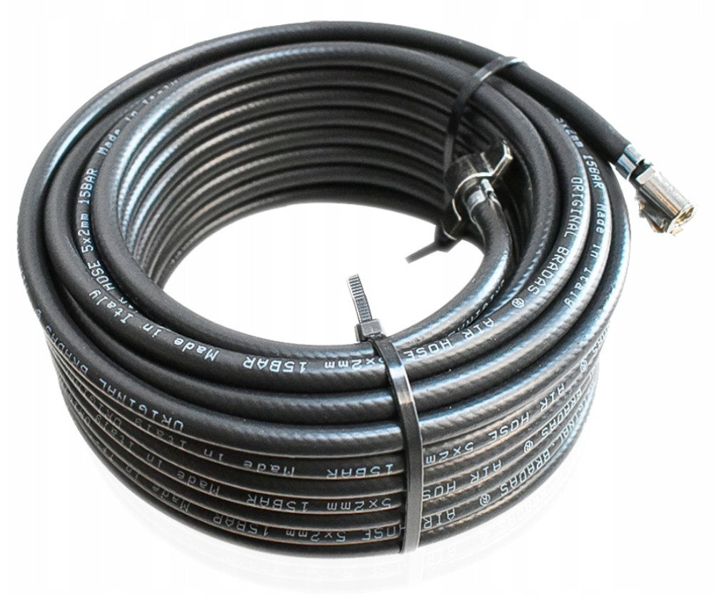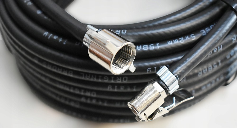 ✔️Verstärktes Kabel zum Pumpen von Rädern mit einer Länge von 18m. Ausgestattet mit professionellen Steckverbindern. Guttasyn Druckluftschlauch zum Befüllen von Reifen, Länge 18 m, Betriebsdruck 23 bar, Maximaldruck 69 bar, Innendurchmesser 5 mm, Außendurchmesser 9 mm (5x2mm), Flügelmuttergewinde M16 x 1,5.