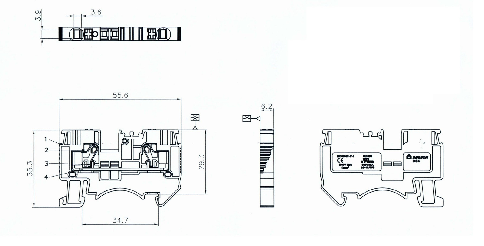 Eine elektrische Installation, die aus vielen Leitern besteht, muss die Kontinuität des Stromflusses im Stromkreis sicherstellen. Durchgangsklemmen sind auf Schienen nach DIN TH / TS 35 montiert und ermöglichen den Anschluss von Drähten und deren Überbrückung. Die Klemmenblöcke der DS4-Serie ermöglichen das Verbinden von Drähten mit einem Querschnitt von 0,2 bis 4 mm2 (24 bis 10 AWG) mit Steckanschluss. Reihenklemmen bestehen aus hochwertigen Kunststoffen PA66 und UL94V-0. Alle Metallteile in der Klemmen bestehen aus einer beschichteten Kupferlegierung. Installationsklemmen haben viele Tests bestanden, um ihre Qualität und Haltbarkeit zu bestätigen. Durchgangsklemmen wurden mit UL- Zertifikaten ausgezeichnet.