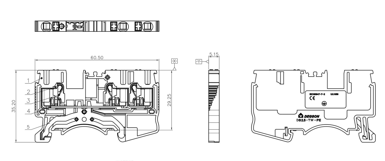 Schutzleiter-Reihenklemme 2.5mm2 3-Leiter gelb-grün Erdungsklemme DS2.5-TW-PE-01P-1C