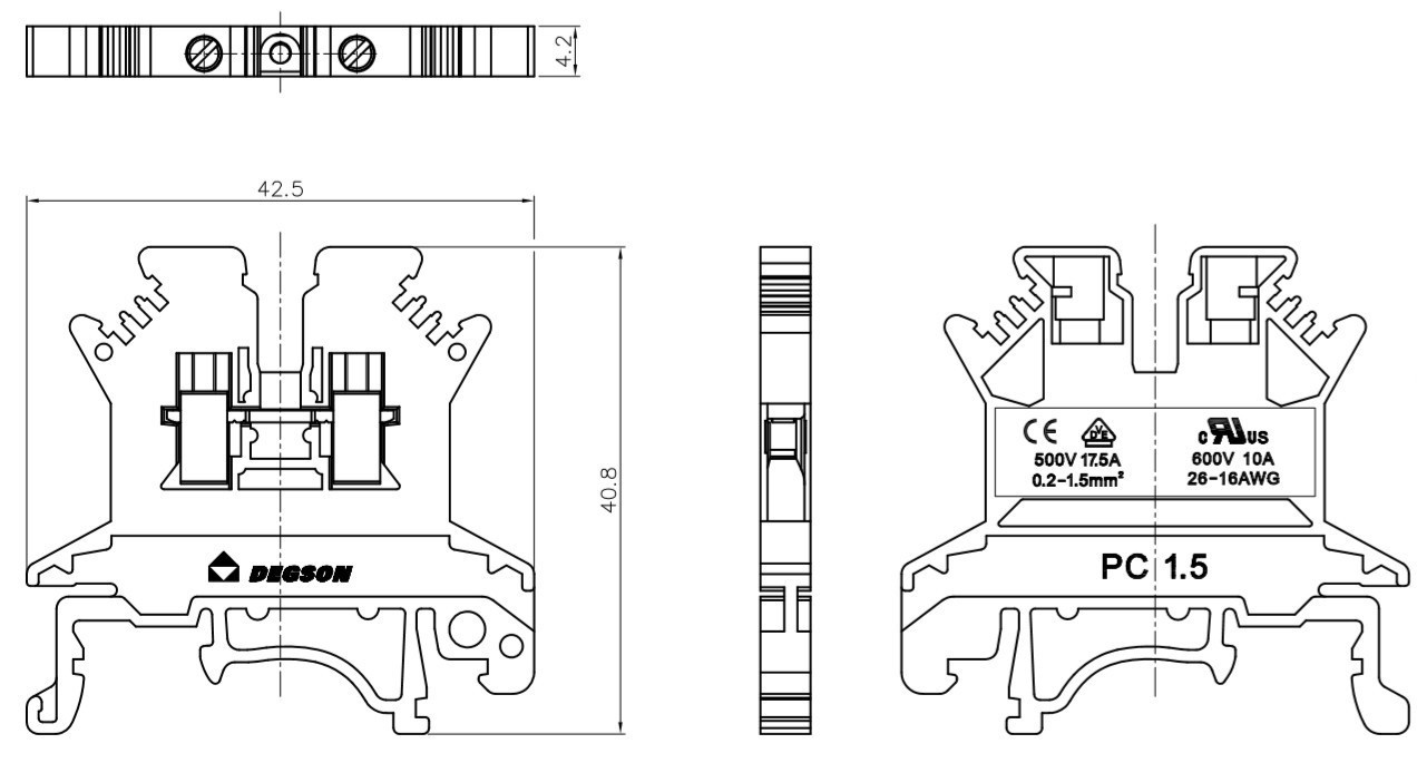 - Reihenklemme 1,5mm2 Durchgangsklemme Schwarz Durchgangsreihenklemme Installationsklemme Schraubklemme VDE UL PC1.5-01P-13-00A(H) Preis-Zone