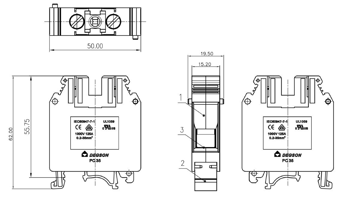 - Reihenklemme 35mm2 Durchgangsklemme Schwarz Durchgangsreihenklemme Installationsklemme Schraubklemme VDE UL PC35-01P-13-00A(H) Preis-Zone