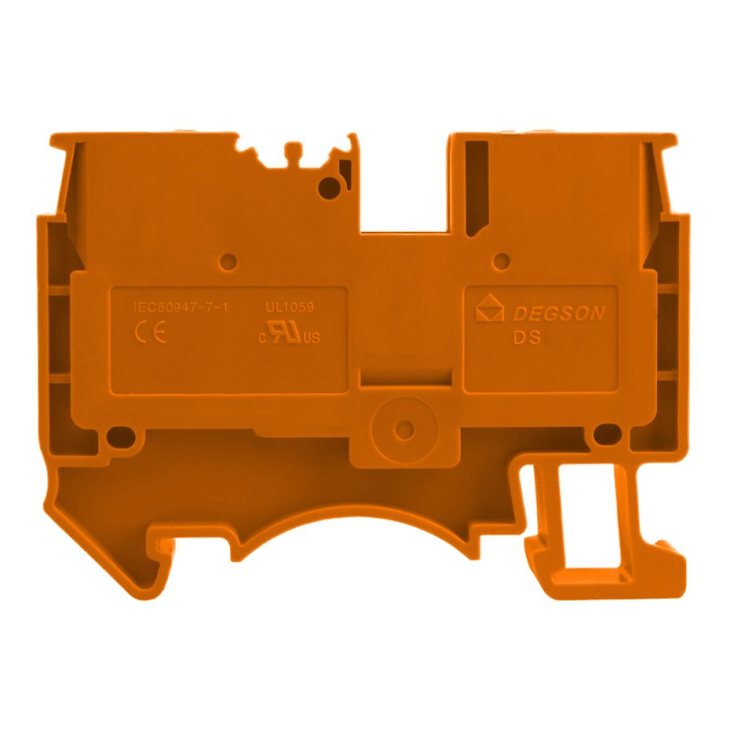 Eine elektrische Installation, die aus vielen Leitern besteht, muss die Kontinuität des Stromflusses im Stromkreis sicherstellen. Durchgangsklemmen sind auf Schienen nach DIN TH / TS 35 montiert und ermöglichen den Anschluss von Drähten und deren Überbrückung. Die Klemmenblöcke der DS4-Serie ermöglichen das Verbinden von Drähten mit einem Querschnitt von 0,2 bis 4 mm2 (24 bis 10 AWG) mit Steckanschluss. Reihenklemmen bestehen aus hochwertigen Kunststoffen PA66 und UL94V-0. Alle Metallteile in der Klemmen bestehen aus einer beschichteten Kupferlegierung. DEGSON Installationsklemmen haben viele Tests bestanden, um ihre Qualität und Haltbarkeit zu bestätigen. Durchgangsklemmen wurden mit UL- Zertifikaten ausgezeichnet.