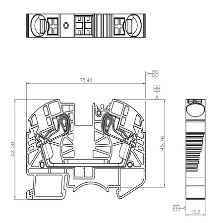 Eine elektrische Installation, die aus vielen Leitern besteht, muss die Kontinuität des Stromflusses im Stromkreis sicherstellen. Durchgangsklemmen sind auf Schienen nach DIN TH / TS 35 montiert und ermöglichen den Anschluss von Drähten und deren Überbrückung. Die Klemmenblöcke der DS16 Serie ermöglichen das Verbinden von Drähten mit einem Querschnitt von 0,5 bis 16 mm2 (20 bis 4 AWG) mit Steckanschluss. Reihenklemmen bestehen aus hochwertigen Kunststoffen PA66 und UL94V-0. Alle Metallteile in der Klemmen bestehen aus einer beschichteten Kupferlegierung. Installationsklemmen haben viele Tests bestanden, um ihre Qualität und Haltbarkeit zu bestätigen.