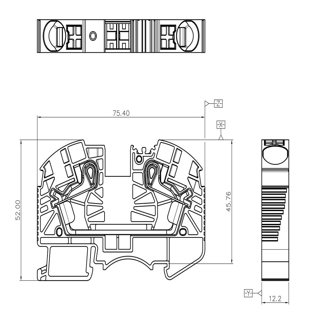 Eine elektrische Installation, die aus vielen Leitern besteht, muss die Kontinuität des Stromflusses im Stromkreis sicherstellen. Durchgangsklemmen sind auf Schienen nach DIN TH / TS 35 montiert und ermöglichen den Anschluss von Drähten und deren Überbrückung. Die Klemmenblöcke der DS16 Serie ermöglichen das Verbinden von Drähten mit einem Querschnitt von 0,5 bis 16 mm2 (20 bis 4 AWG) mit Steckanschluss. Reihenklemmen bestehen aus hochwertigen Kunststoffen PA66 und UL94V-0. Alle Metallteile in der Klemmen bestehen aus einer beschichteten Kupferlegierung. Installationsklemmen haben viele Tests bestanden, um ihre Qualität und Haltbarkeit zu bestätigen.