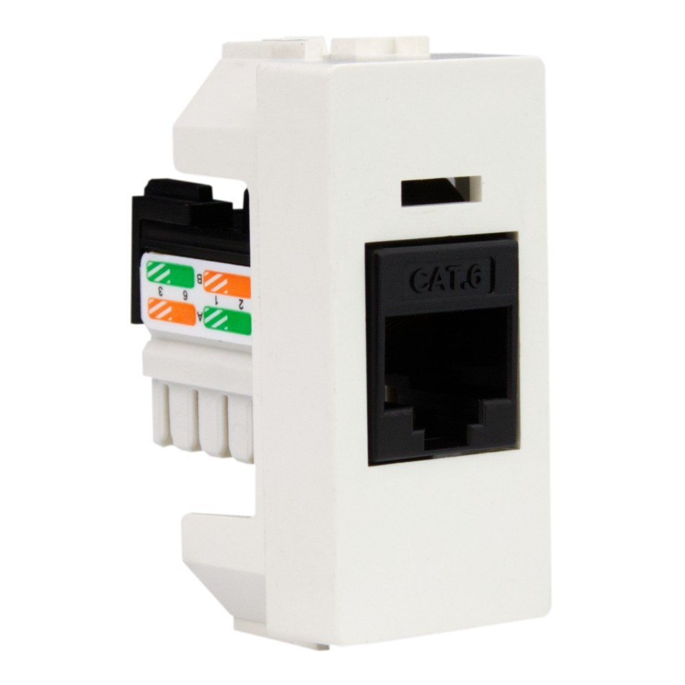 Keystone Modul zur Unterputzmontage in einer modularen Box. Die RJ45 cat.6 Einstaz wird für den Internetzugang in Wohnungen, Büros, Konferenzräumen und überall dort eingesetzt, wo Sie Zugang zum Netzwerk benötigen.