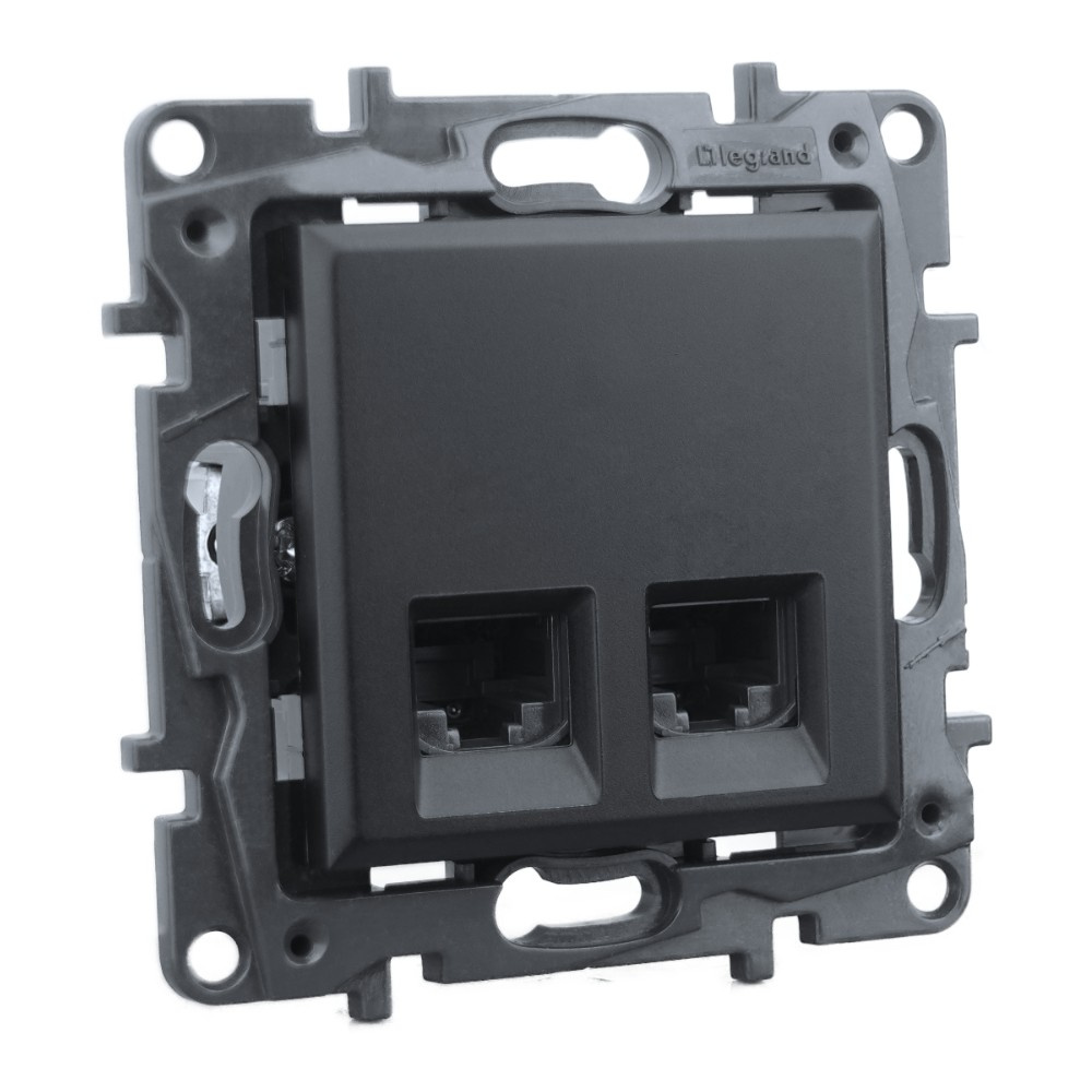 Doppelte Netzwerksteckdose 2xRJ45 Cat. 5e in der schwarzen Farbe,