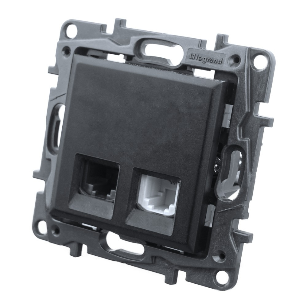Computersteckdose RJ45 + Telefonsteckdose RJ11 schwarz Niloe Step 863556