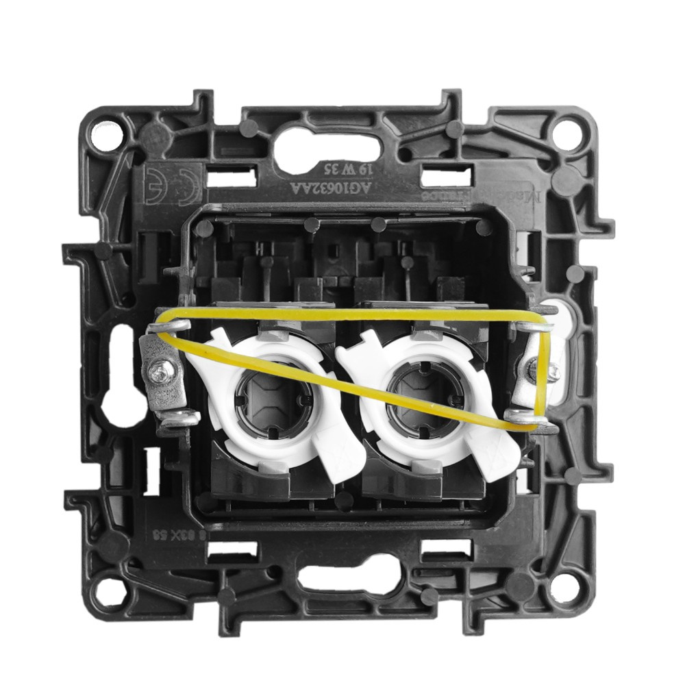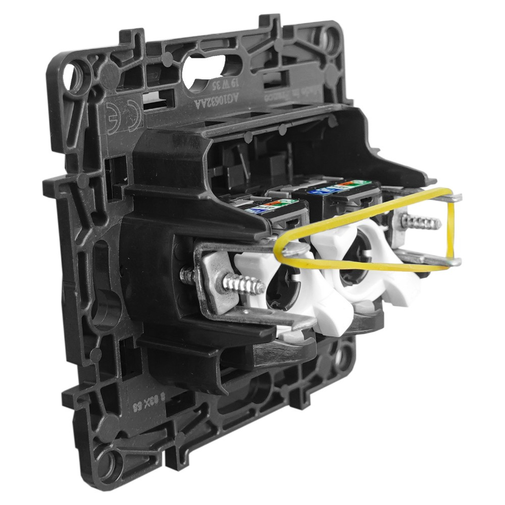 ➡️ Doppelte Computersteckdose (RJ45) für den Anschluss von verdrillten Kabeln der Kategorie 5e (Internet). Montage in Standard-Unterputzdosen fi 60.