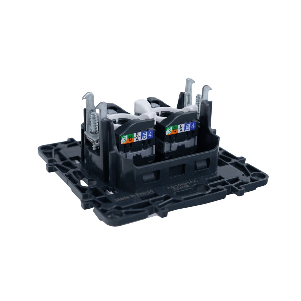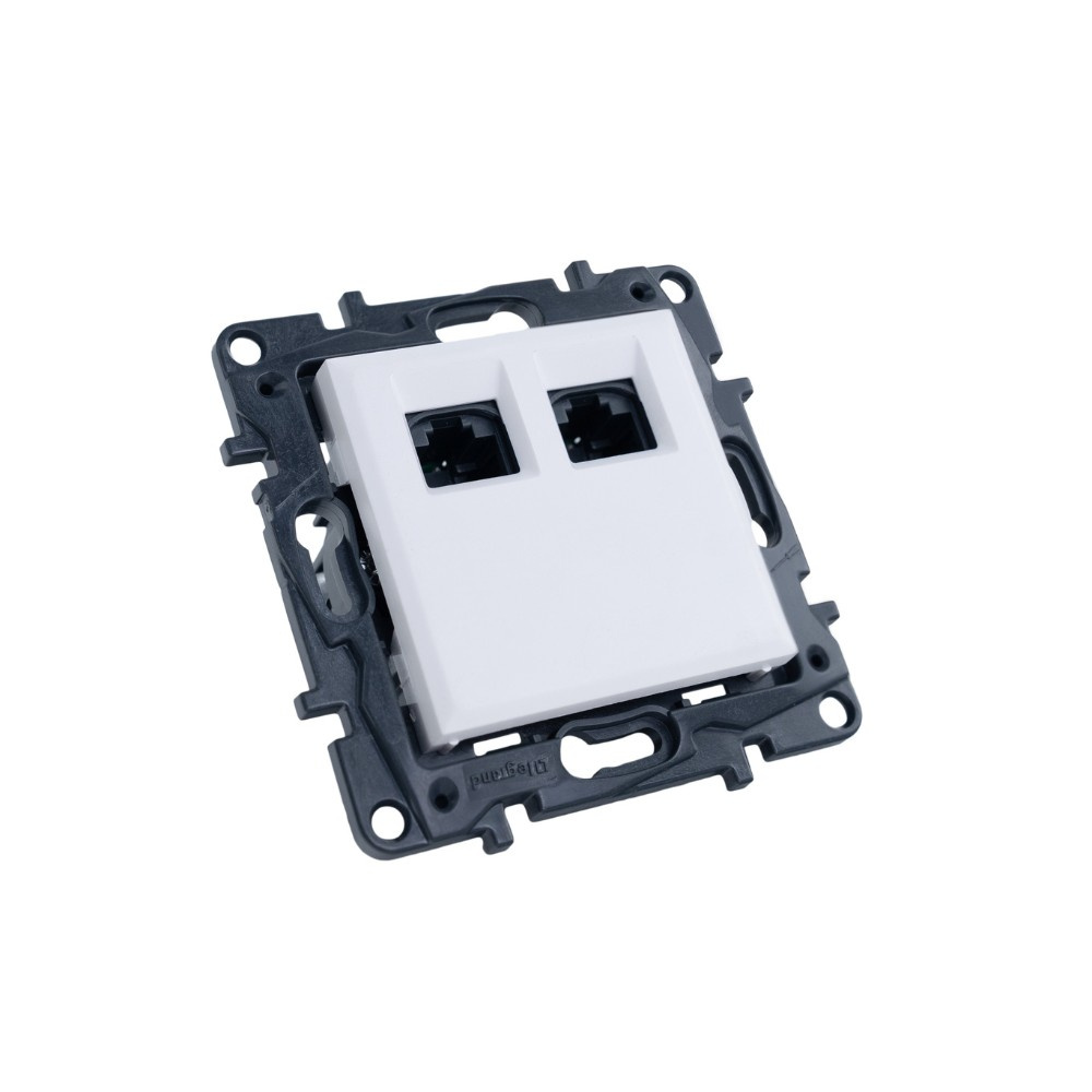 Die Doppelsteckdosen ermöglichen die gleichzeitige Nutzung von zwei Netzwerkgeräten. Die weiße Farbe fügt sich perfekt in die meisten Innenräume ein und verleiht ihnen Eleganz und Modernität. Dank des einfachen Montagesystems ist die Installation unserer Steckdose schnell und einfach