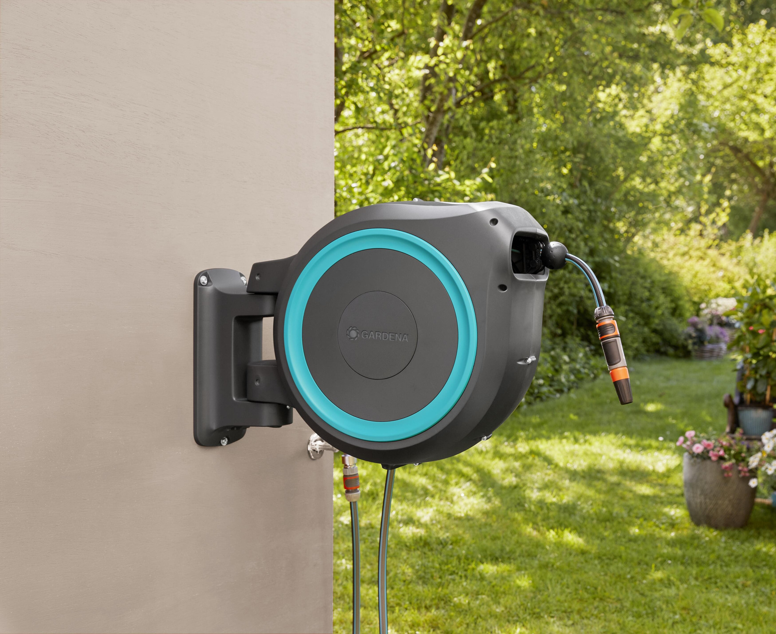- Mit dem Gartenschlauchaufroller zur Wandmontage wird die Bewässerung Ihres Gartens so bequem und einfach wie nie zuvor. Er sorgt für Ordnung in ihrem Garten.