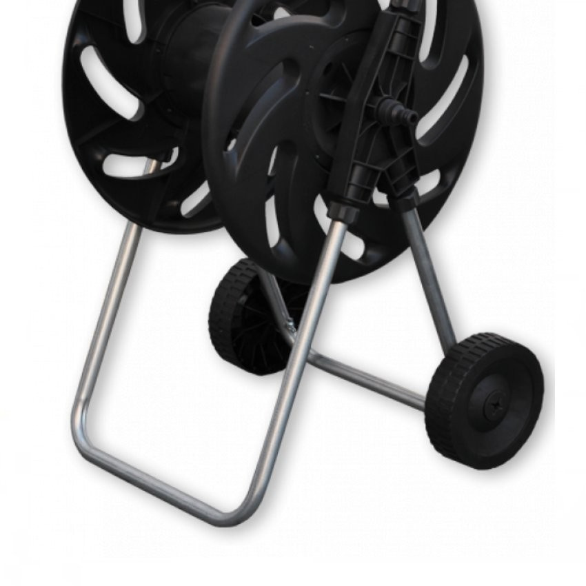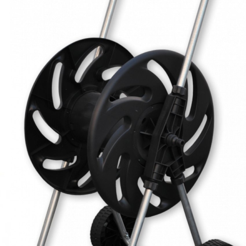 Der Schlauchwagen bietet eine Kapazität von bis zu 80 Metern für einen 1/2 "-Schlauch. Mit seiner stabilen und robusten Basis ist er perfekt für den Transport und die Aufbewahrung von Schläuchen geeignet.
