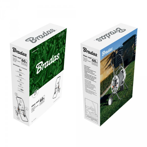 Bradas Schlauchwagen WHITE LINE für 1/2" 60m Schlauch mit Sprühset TITAN REEL WL-W5000