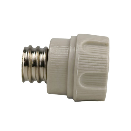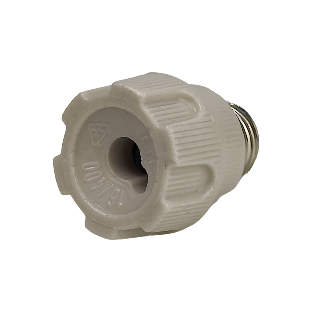 Der Sicherungskopf besteht aus einem Porzellanbauteil, das als Griff fungiert, sowie einem Metallgewinde vom Typ E14, das zum Einschrauben in den Sicherungssockel vorgesehen ist.