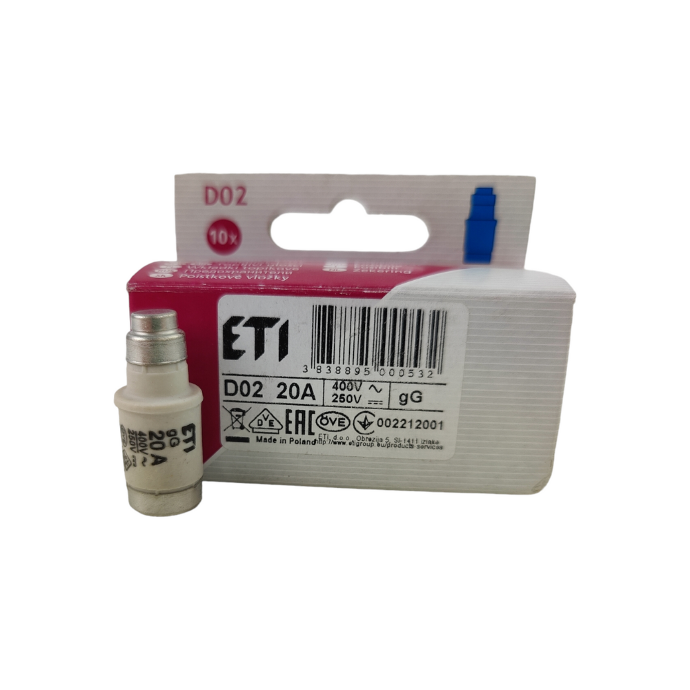 ETI Schmelzeinsatz Porzellan D02 20A/400V 002212001