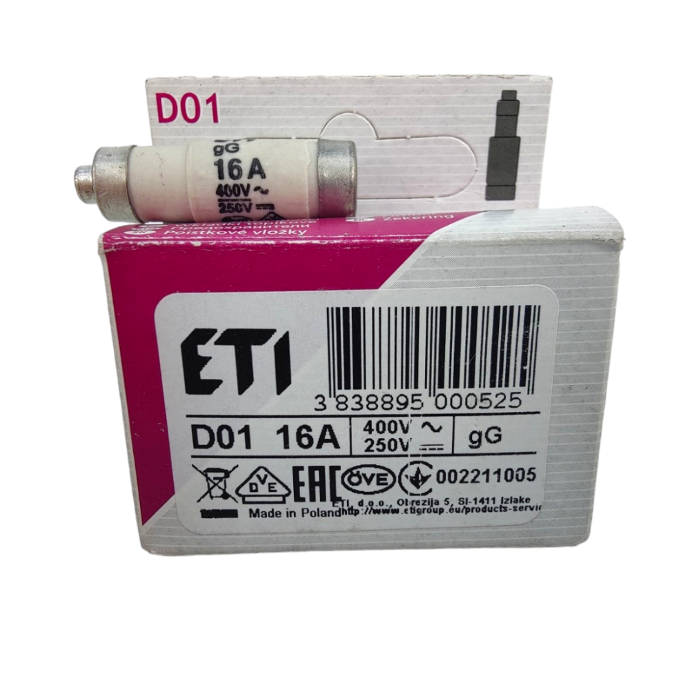 Porzellansicherung ETI D01 16A/400V – zuverlässiger Schutz elektrischer Stromkreise vor Kurzschluss und Überlastung, konform mit DIN EN Normen