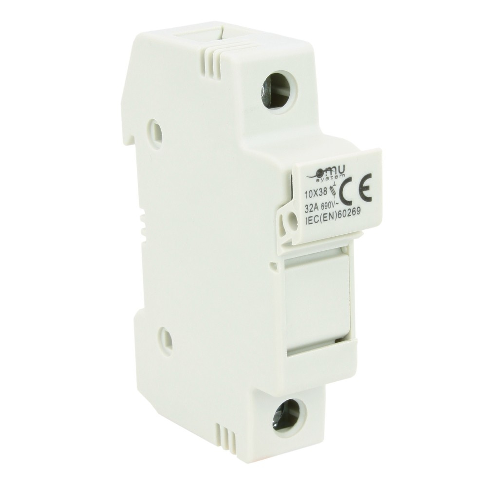Sicherungssockel für 10x38 zylindrische Einsätze. Sie dient zum Schutz von elektrischen Geräten, Steuer- und Signalisierungskreisen. Ein weiterer Vorteil ist die Möglichkeit der Montage auf der Schiene TH-35. Der Sicherungssockel ist nach IEC (EN) 60269 gefertigt.