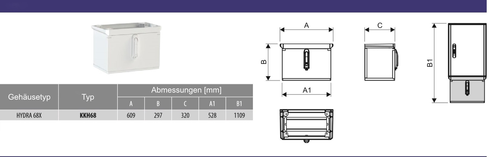 - Abmessung: Sockel geeignet für Gehäuse HYDRA 686 und HYDRA T 685, 609 x 297 x 320 mm
