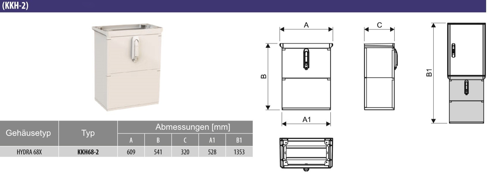 - Abmessung: geeignet für Gehäuse HYDRA 686 und HYDRA T 685, 609 x 541 x 320 mm