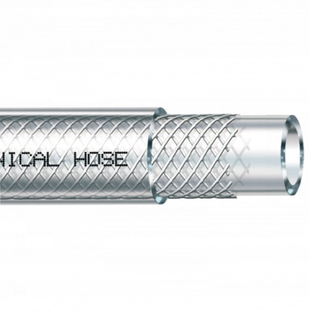 Technischer Schlauch aus Weich-PVC höchster Qualität.  Verstärkt mit dreifachem Polyestergarn mit Textilverstärkung.  Das Produkt zeichnet sich durch Langlebigkeit und Sauerstoffbeständigkeit aus und hat eine hohe Abriebfestigkeit.