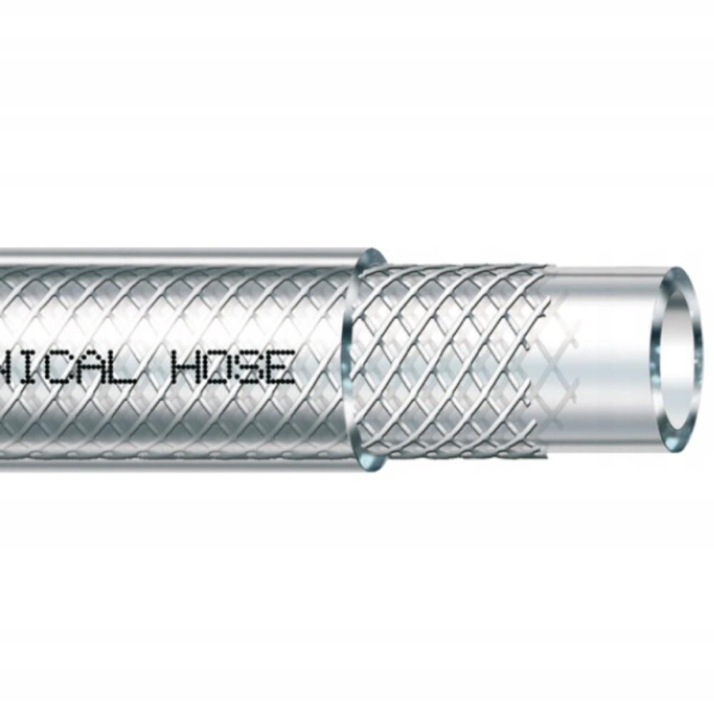 Technischer Schlauch aus Weich-PVC höchster Qualität. Verstärkt mit dreifachem Polyestergarn mit Textilverstärkung. Das Produkt zeichnet sich durch Langlebigkeit und Sauerstoffbeständigkeit aus und hat eine hohe Abriebfestigkeit. Der Schlauch wird für den Durchfluss von Luft, Lebensmitteln und leichten Chemikalien unter Druck verwendet. Das Produkt wird im Gartenbau, in der Landwirtschaft, in der Lebensmittelindustrie und bei anderen Arbeiten im Haushalt und in der Hauswirtschaft weit verbreitet eingesetzt. Der technische Schlauch ist frei von toxischen Bestandteilen, umweltfreundlich, enthält kein Cadmium. Es kann mit Druckgeräten für den Luftstrom verwendet werden. Der Schlauch ermöglicht dank seiner Transparenz eine ständige Kontrolle des fließenden Materials.