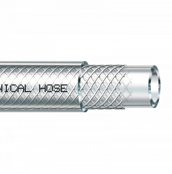 Technischer Schlauch aus Weich-PVC höchster Qualität.  Verstärkt mit dreifachem Polyestergarn mit Textilverstärkung.  Das Produkt zeichnet sich durch Langlebigkeit und Sauerstoffbeständigkeit aus und hat eine hohe Abriebfestigkeit.