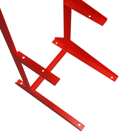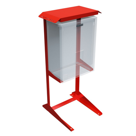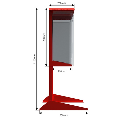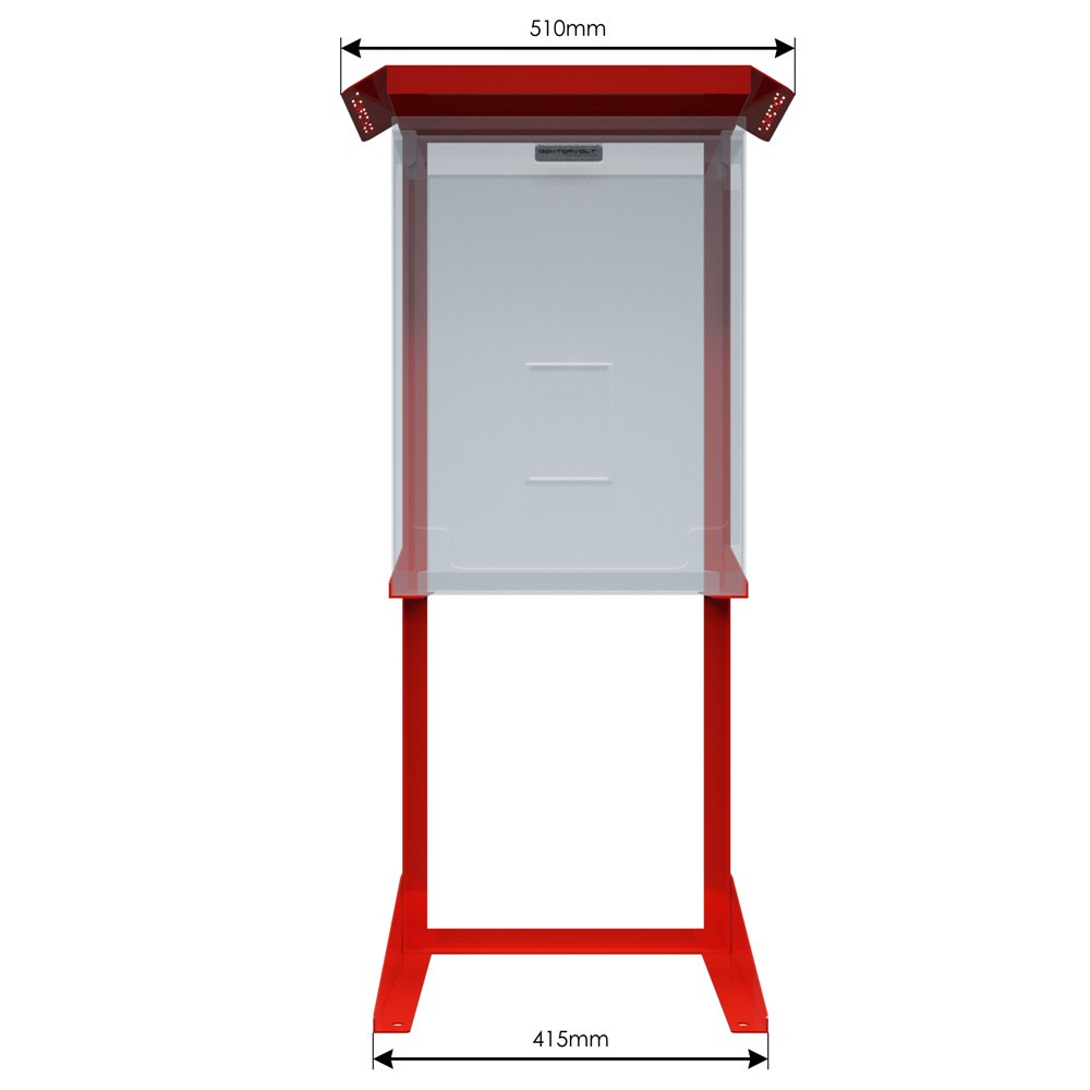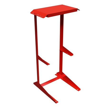 Hergestellt aus verzinktem Stahl, pulverbeschichtet in rot RAL 3002, ist der Ständer sehr korrosions- und abriebfest. Die Bohrungen im rechteckigen Rahmen ermöglichen eine dauerhafte Befestigung an einer Schalttafel oder einem Schaltschrank. Ein Wandschutz ist nicht erforderlich. Der schnelle Zugriff auf das montierte Gerät und das Gewicht von ca. 8,2 kg sorgen für Stabilität im Einsatz.