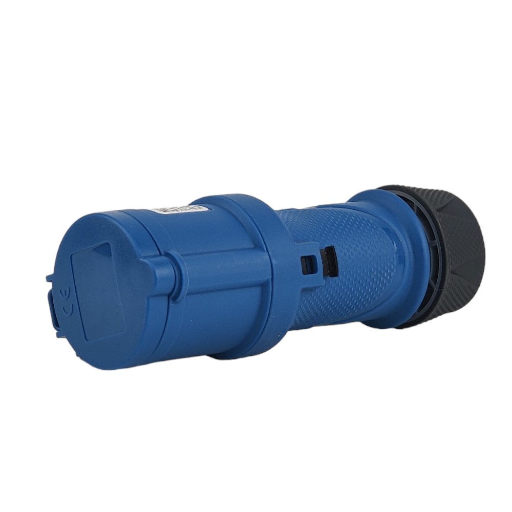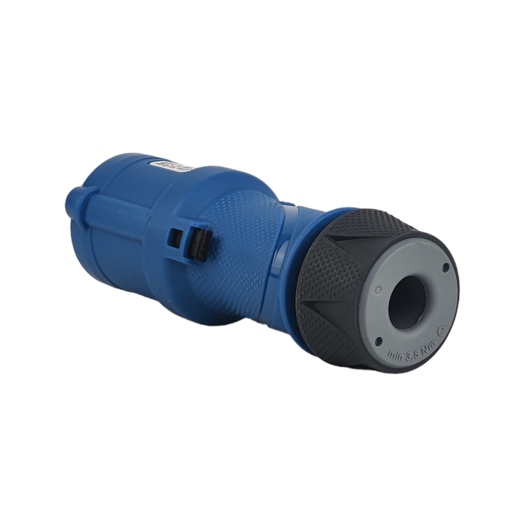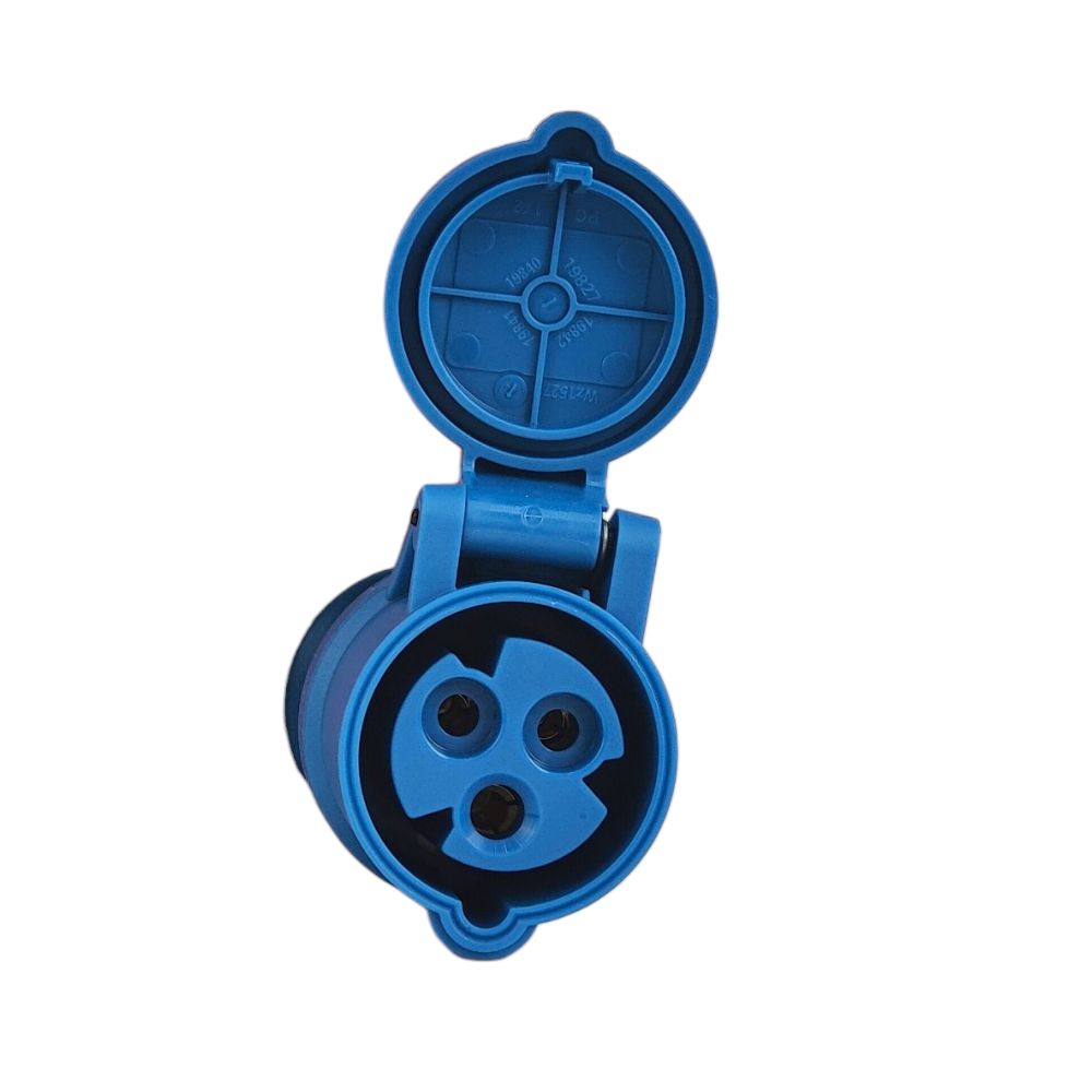 - Steckdose 16A, 230V, zweipolig mit zusätzlichem Schutzkontakt. Angewandte Schutzklasse IP54. Einfache Installation und solide Bauweise