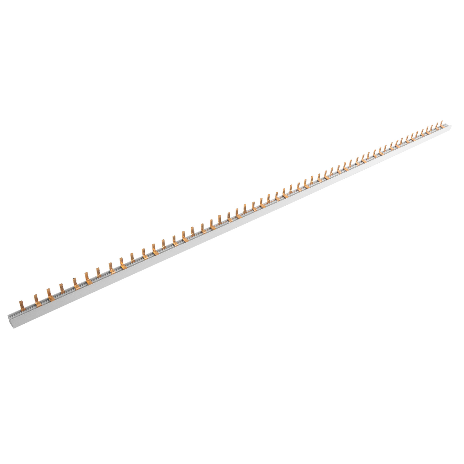 Mit einer Länge von 100 cm und einem Querschnitt von 10 mm² ist die 3P-Schiene ideal für große Schaltschränke. Sie trägt bis zu 54 Module und gewährleistet eine stabile und sichere Stromversorgung. Das weiße Gehäuse passt zu modernen Elektroinstallationen.