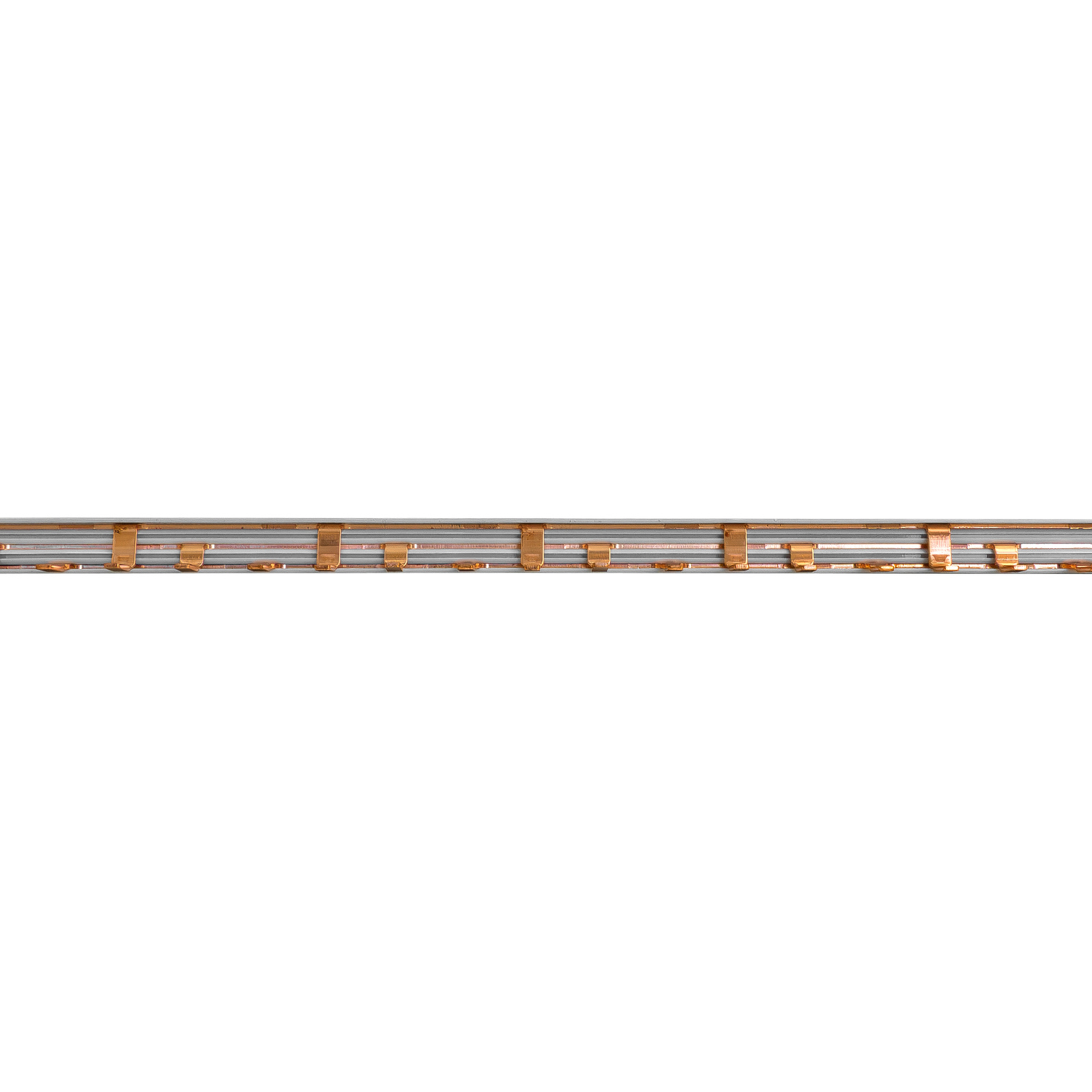 - Mit einer Länge von 100 cm und einem Querschnitt von 10 mm² ist die 3P-Schiene ideal für große Schaltschränke. Sie trägt bis zu 54 Module und gewährleistet eine stabile und sichere Stromversorgung. Das weiße Gehäuse passt zu modernen Elektroinstallationen