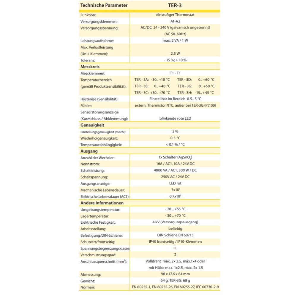 ELKO Thermostat zur Temperaturüberwachung und -regelung im Bereich von -15°C bis +45°C einstufig TER-3H