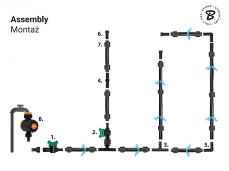 - Das Set enthält einen Tropfschlauch und 87 Elemente, die es ermöglichen, den Schlauch beliebig zu positionieren.
