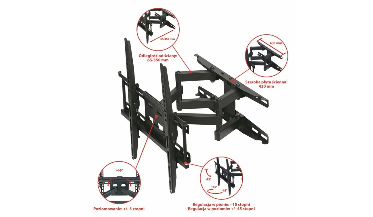 ✔️ Wandhalterung mit Doppelarm, garantiert höchste Ausführungs- und Stabilitätsstandards,