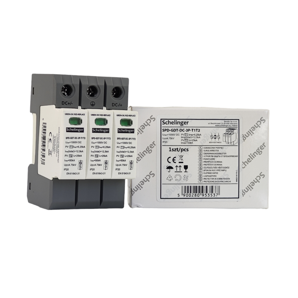 Der Überspannungsschutz 3P 12,5kA DC 1000V der Klasse T1+T2 (B+C) mit Gasableiter der Marke Bemko ist ein fortschrittliches Schutzgerät, das speziell für Gleichstrominstallationen, einschließlich Photovoltaiksysteme, entwickelt wurde. Es bietet wirksamen Schutz vor Überspannungen und schützt wertvolle elektrische Geräte..