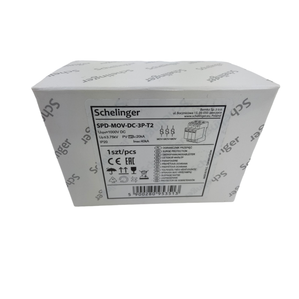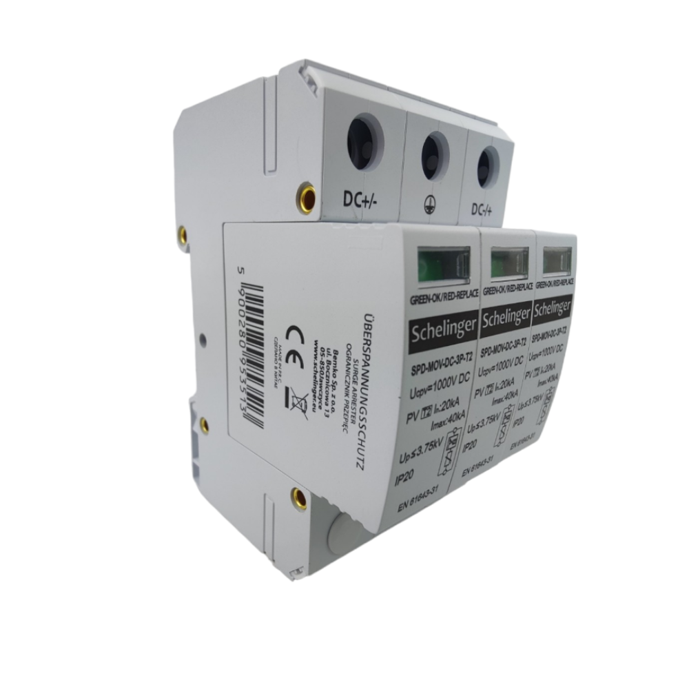 - Überspannungsschutz 3P DC 1000V der Marke Schelinger ist ein zuverlässiges Schutzgerät, das für Photovoltaikanlagen
