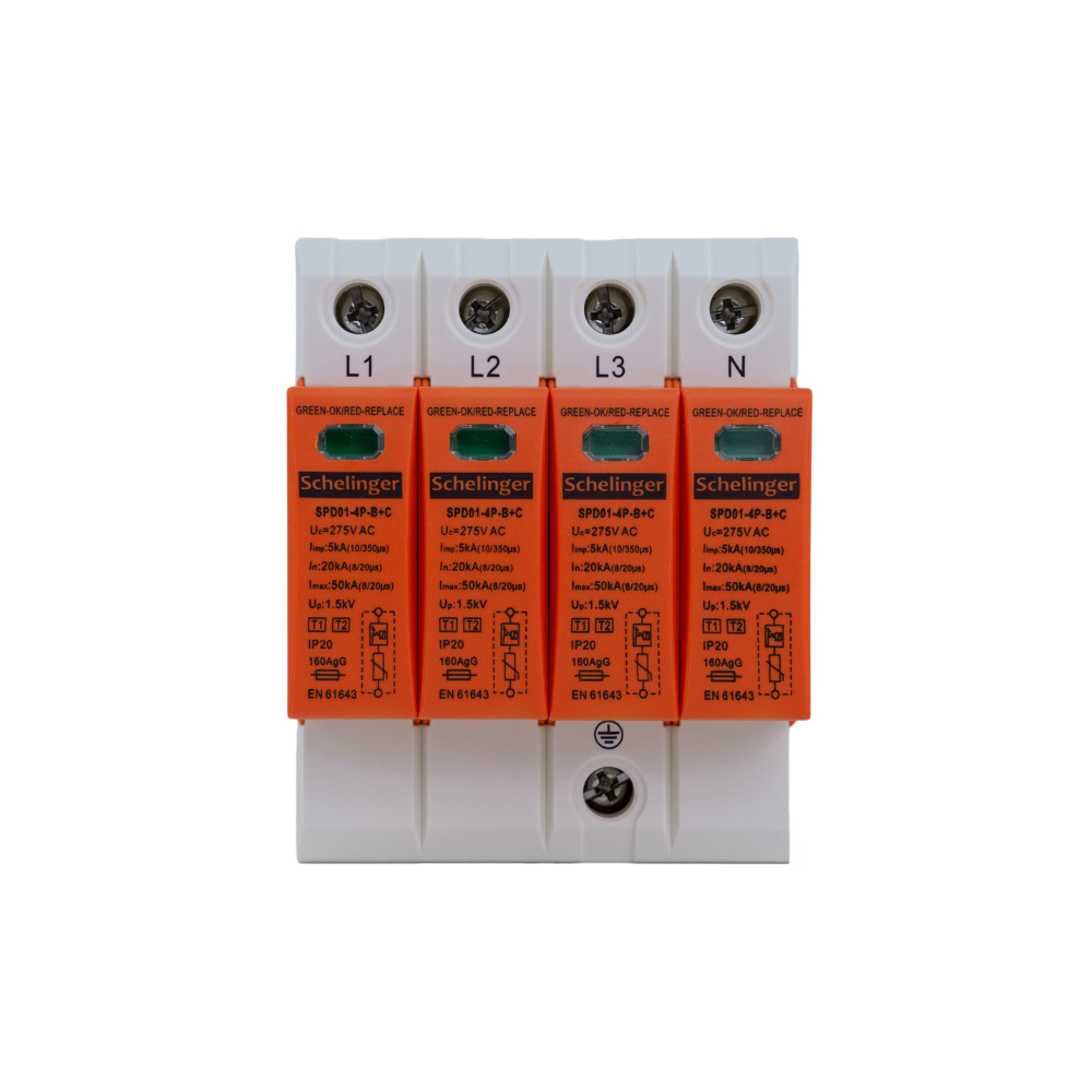Überspannungsschutz 1P 5kA(10/350) KLASSE T1+T2 (B+C) SCHELINGER A51-SPD01-4P-B+C