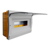 Die Verteilerkasten der Serie 970 bieten Montagelösungen von 4 bis 36 Modulen. Die Modelle sind mit gedimmten oder weißen Türen erhältlich. Die Unterverteilung ist ästhetisch ansprechend und passt perfekt in das moderne Interieur. Das DIN-Schienen-Montagesystem ermöglicht die Montage an der Ober- oder Unterseite der Sicherungskasten. Die Frontplatte besteht aus wärmebeständigen Technopolymeren. Die Tür ist aus strapazierfähigem, farbigem Polycarbonat gefertigt. Gelber (RAL 1017) Basis aus schlagfestem Technopolymer.