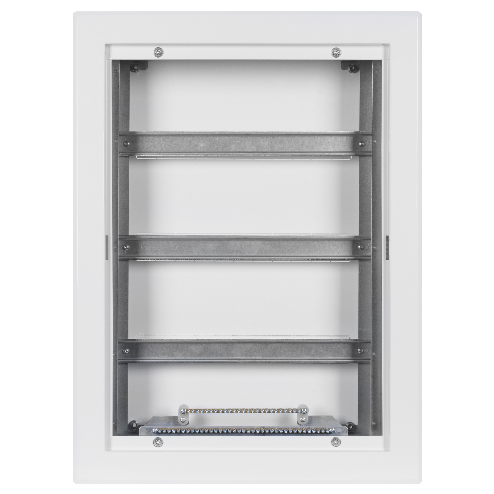 Dieser zuverlässige Unterputz Verteilerschrank ist mit 3 Reihen für insgesamt 54 Module ausgestattet. Er ist aus 1 mm dickem Metall gefertigt und bewährt sich auch an den anspruchsvollsten Arbeitsplätzen. Zudem garantiert er eine langjährige Lebensdauer. Die Pulverbeschichtung der Komponenten schützt sie vor Korrosion.