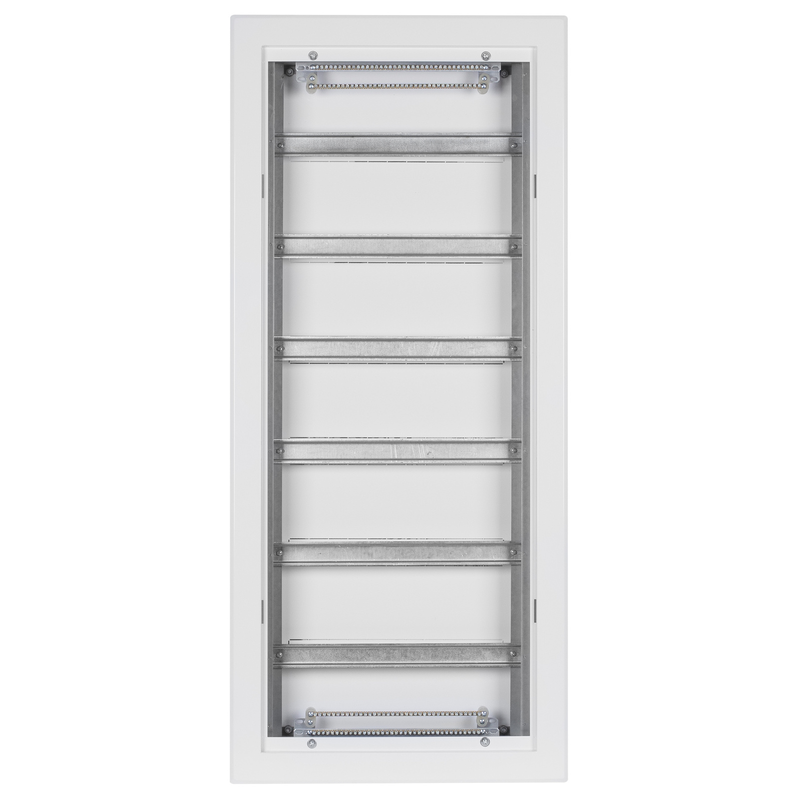 Dieser zuverlässige Unterputz Verteilerschrank ist mit 6 Reihen für insgesamt 108 Module ausgestattet. Er ist aus 1 mm dickem Metall gefertigt und bewährt sich auch an den anspruchsvollsten Arbeitsplätzen. Zudem garantiert er eine langjährige Lebensdauer. Die Pulverbeschichtung der Komponenten schützt sie vor Korrosion.