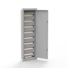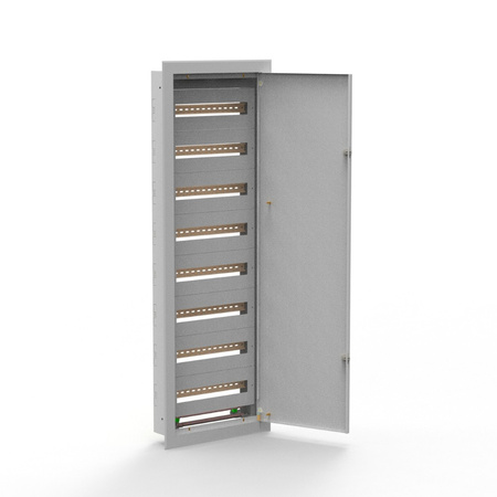 Der Verteilerkasten besteht aus 8 Reihen DIN-Schienen, auf denen 144 Module montiert werden können. Es besteht die Möglichkeit, 18 Module auf einer Schiene zu montieren. Der Verteilerschrank verfügt außerdem über eine Tür mit Drehschloss, die einen geschützten Zugang zum Inneren des Sicherungskasten ermöglicht. Die Türen sind so konzipiert, dass sie je nach Bedarf nach links oder rechts geöffnet werden können. Die Kabeleinführung ist sowohl von oben als auch von unten möglich, je nach Bedarf. Die durchdachte Konstruktion des Kastens erlaubt es, Kabel sowohl von unten als auch von oben zu verlegen. Ein weiterer Vorteil ist die Möglichkeit, jedes Element des Verteilerkasten abzuschrauben. Um das Innere des Kastens noch sicherer zu machen, kann das Türschloss durch ein Schlüsselschloss ersetzt werden. Die Elemente des Sicherungskastens sind pulverbeschichtet. Dadurch sind sie besser vor Korrosion geschützt.
